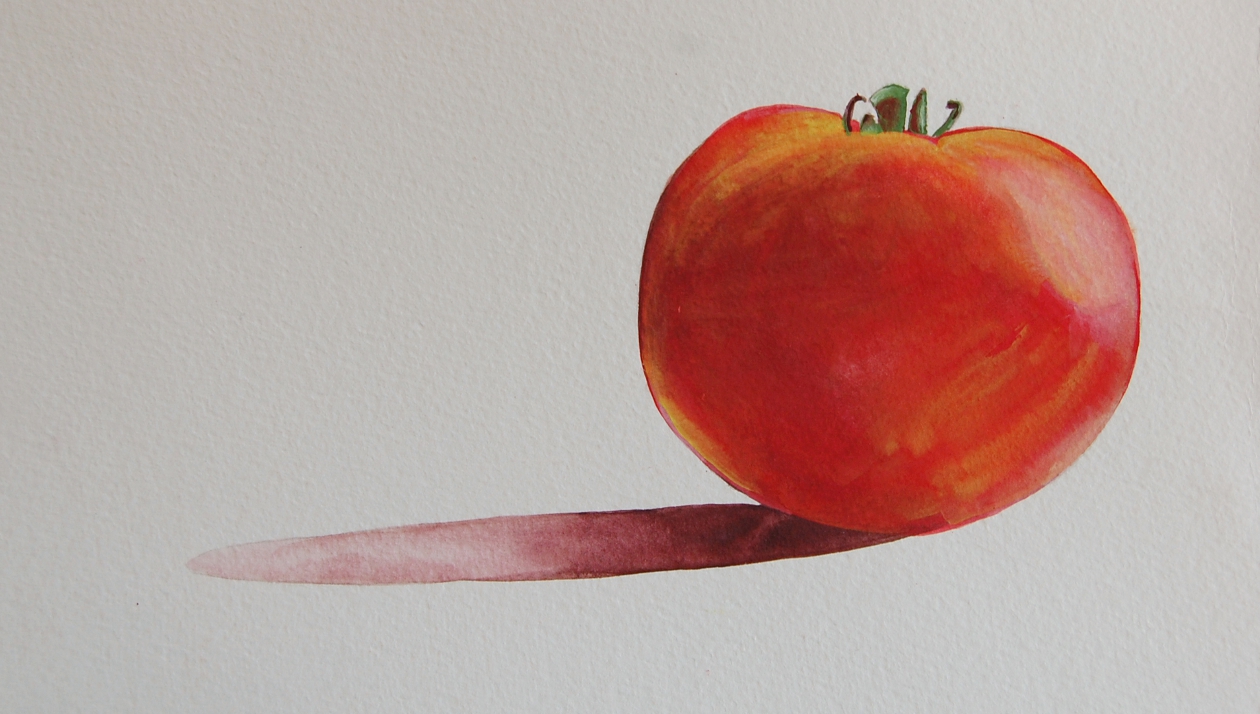 Local Color Gouache. On this one I showed how to use white over a dark area to change it. I then added the red color over the entire area. It now needs yellow/orange and some refining. |