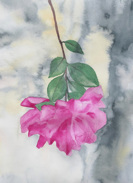 | Use White and Indigo Blue colored pencils. Use white to add the highlights and blue to slightly darken the shadows. Work on the flower, leaves, and branch. |