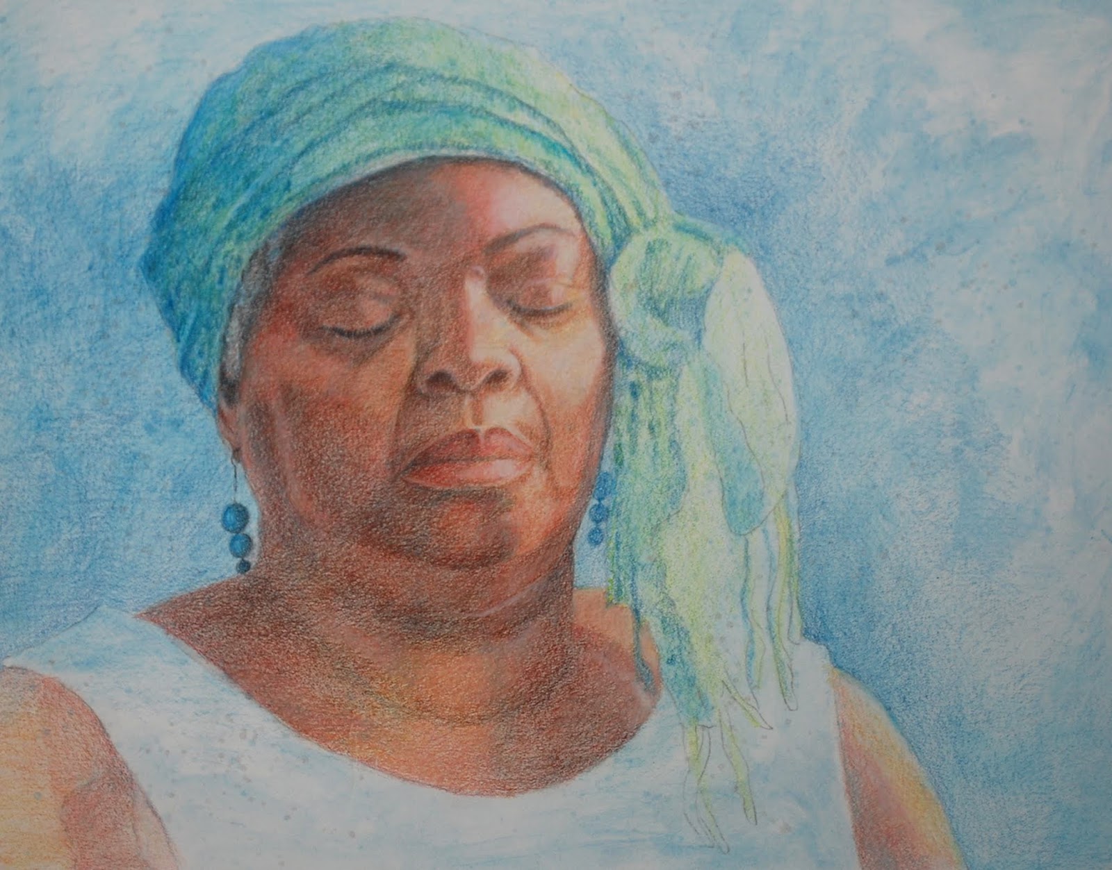 | Colored pencil on Dura-Lar Matte, a white background with color added to the color side. I have not finished adding color everywhere. |